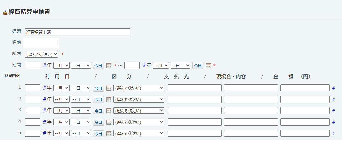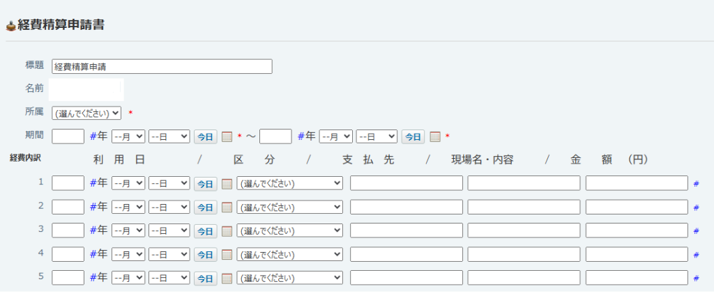 ワークフローで経費精算の入力画面を作っておき、従業員が各自で入力して申請します。
